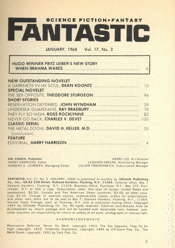 Fantastic (1952-1980 Ziff-Davis/Ultimate) Vol. 17 #3Published Jan 1968 by Ziff Davis.$2.65