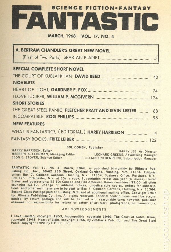 Fantastic (1952-1980 Ziff-Davis/Ultimate) Vol. 17 #4Published Mar 1968 by Ziff Davis.$2.50