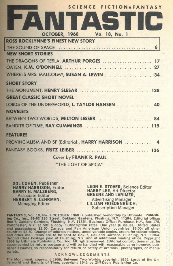 Fantastic (1952-1980 Ziff-Davis/Ultimate) Vol. 18 #1Published Oct 1968 by Ziff Davis.$2.50