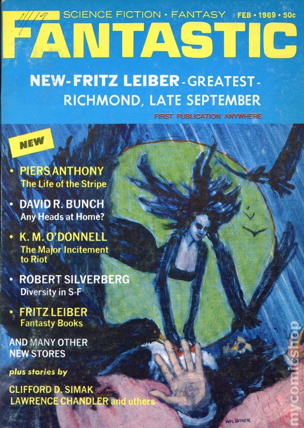 Feb 1969. Cover by Baker. Science fiction and fantasy stories by Fritz Leiber, Piers Anthony, David R. Bunch, Clifford D. Simak, Lawrence Chandler, Edward Y. Breese, P.G. Wyal, K.M. O'Donnell, James R. Sallis, Robert Hoskins, Jody Scott Wood, Robert S. Phillips, Kendall Crossen, and Ralph Sholto. 5.5-in. x 7.75-in.; black and white; 144 newsprint pages. Cover price $0.50.