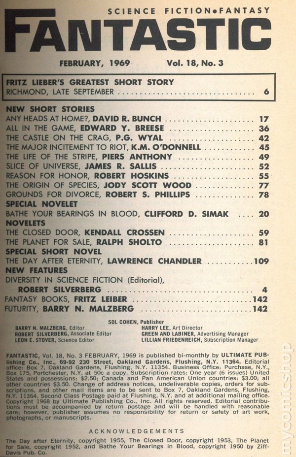 Fantastic (1952-1980 Ziff-Davis/Ultimate) Vol. 18 #3Published Feb 1969 by Ziff Davis.$2.50