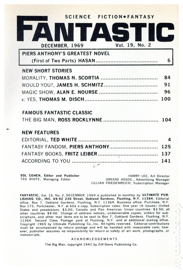Fantastic (1952-1980 Ziff-Davis/Ultimate) Vol. 19 #2Published Dec 1969 by Ziff Davis.$2.50