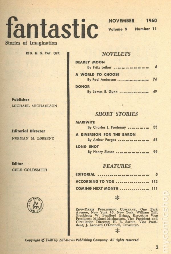 Fantastic (1952-1980 Ziff-Davis/Ultimate) Vol. 9 #11Published Nov 1960 by Ziff Davis.