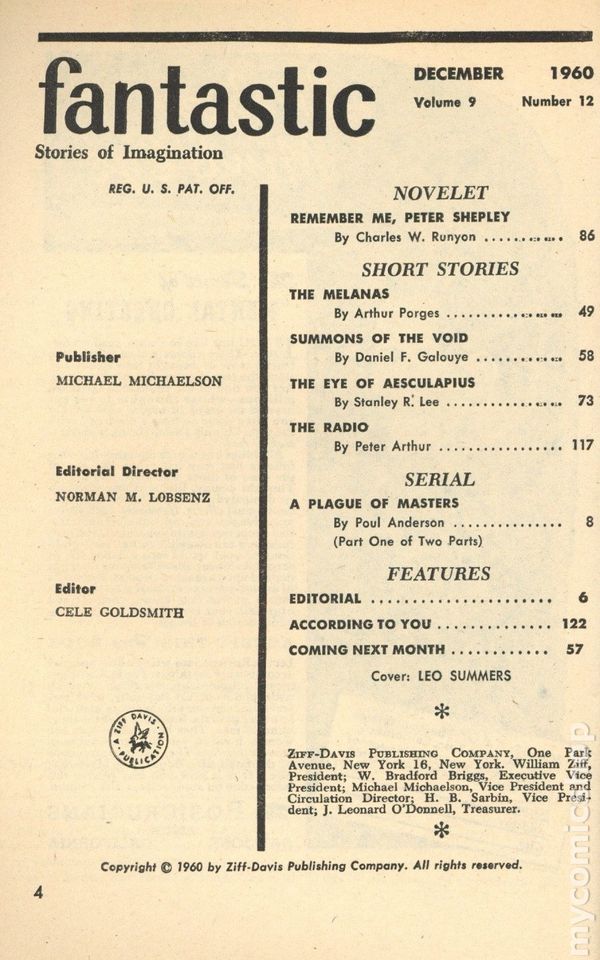 Fantastic (1952-1980 Ziff-Davis/Ultimate) Vol. 10 #12Published Dec 1961 by Ziff Davis.