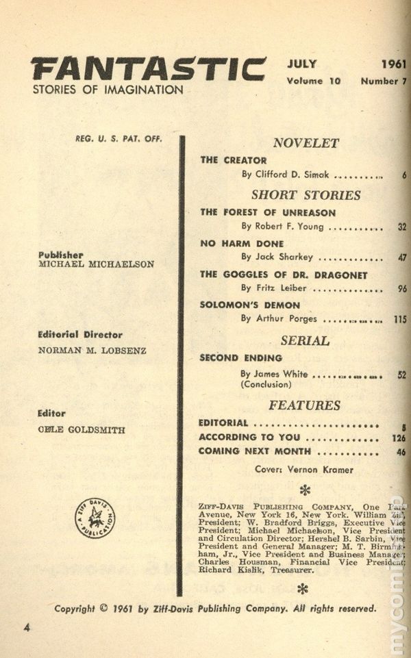Fantastic (1952-1980 Ziff-Davis/Ultimate) Vol. 10 #7Published Jul 1961 by Ziff Davis.