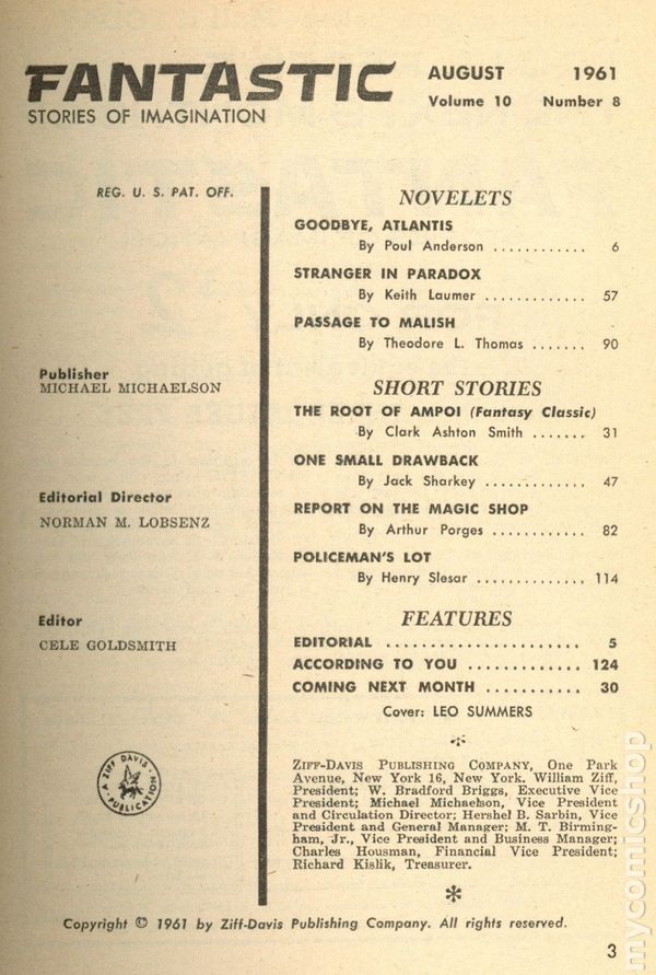 Fantastic (1952-1980 Ziff-Davis/Ultimate) Vol. 10 #8Published Aug 1961 by Ziff Davis.