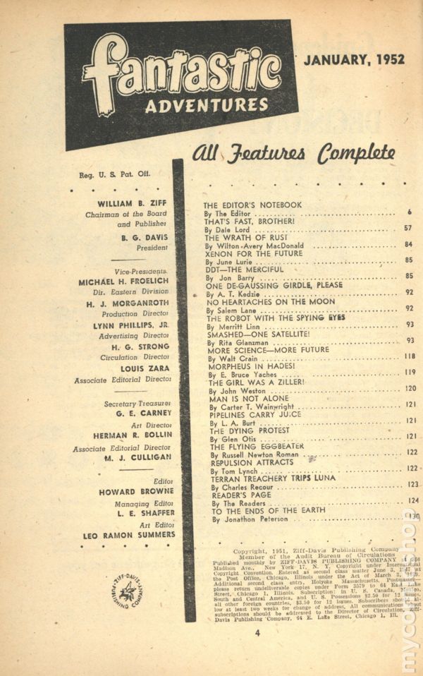 Published Feb 1952 by Ziff Davis.$9.00