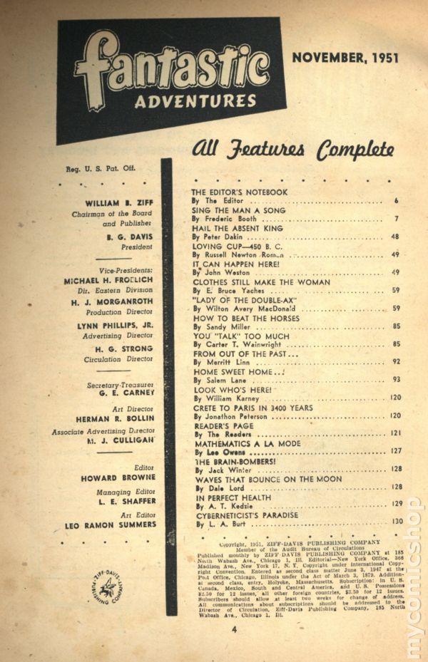 Published Nov 1951 by Ziff Davis.$70.00