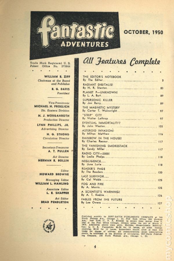 Published Oct 1950 by Ziff Davis.$84.00