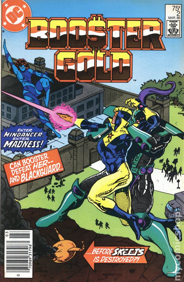 Thorn comes to Booster and Skeets' aid in the lair of the 1000, as Mindancer and Blackguard attack the heroes in "Crash". Script and pencils by Dan Jurgens, inks by Mike DeCarlo. Jurgens/DeCarlo cover. Cover price $0.75.