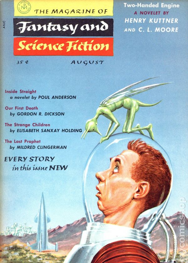 Volume 9, Issue 2 - August 1955. Cover by Edward Emsh. Fantasy and science fiction stories by Henry Kuttner, C.L. Moore, Poul Anderson, Gordon R. Dickson, Elisabeth Sanxay Holding, and Mildred Clingerman. Softcover, 5 1/2-in. x 7 1/2-in., 128 pages, B&W. Cover price $0.35.