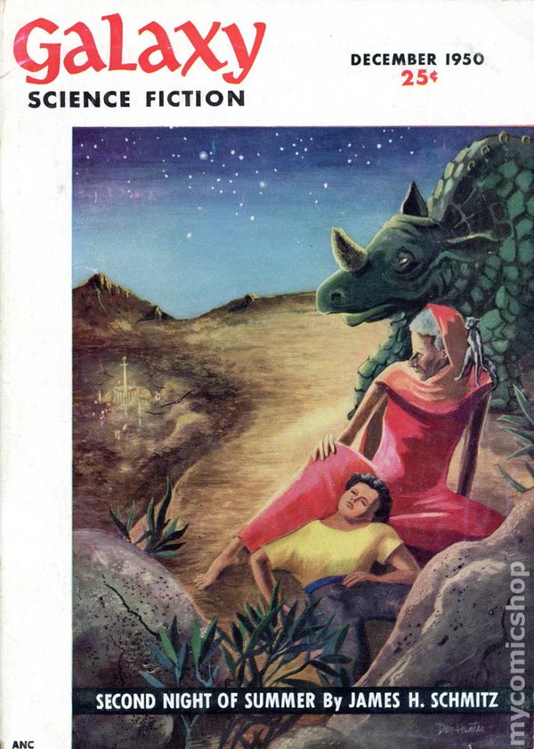 November 1950. Cover by Don Sibley. Stories: "Time Quarry"(Part 2) by Clifford D. Simak, "Honeymoon in Hell" by Fredric Brown, "Transfer Point" by Anthony Boucher, "Misbegotten Missionary" by Isaac Asimov, "Coming Attraction" by Fritz Leiber, and "To Serve Man" by Damon Knight. Article: "Lands of Yesterday" by L. Sprague De Camp. 5.25-in. x 7.5-in.; 160 Pages, B&W. Cover price $0.25.