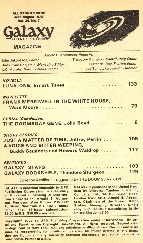 Galaxy Science Fiction (1950-1980 World/Galaxy/Universal) Vol. 33(#34) #7Published Jul 1973 by Galaxy Publications.$2.50