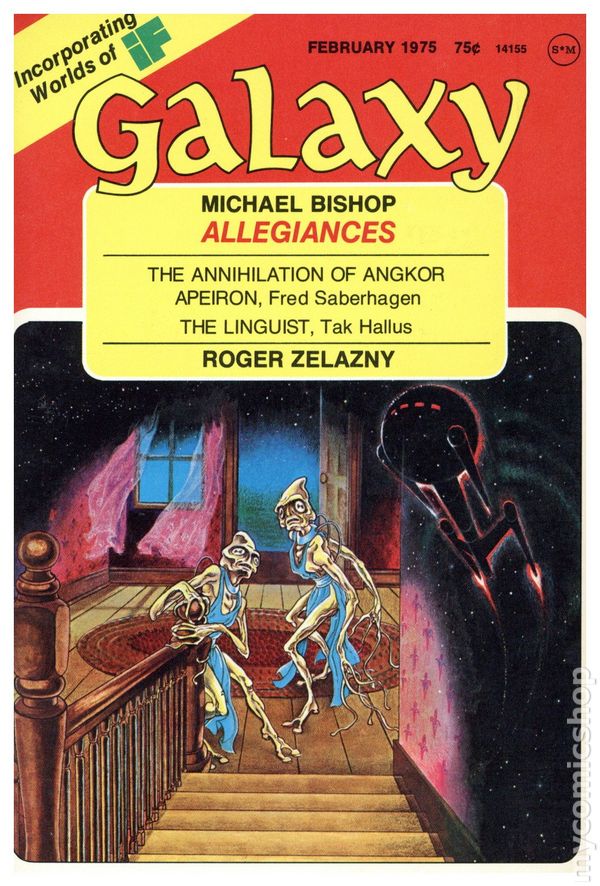 Volume 36, Issue 2 - February, 1975. Cover by Pini and Pini. Science fiction stories by Michael Bishop, Fred Saberhagen, Tak Hallus and more. Illustrations by Wendy Pini, Ames, Jack Gaughan, Stephen Fabian, Freff. Softcover, 5-1/4-in. x 7-1/4-in.; b&w text with spot illustrations; 160 newsprint pages. Cover price $0.75.