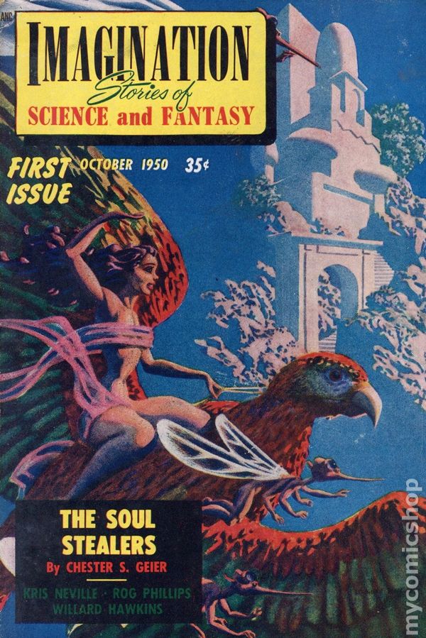 $100 Imagination #1 10/1950-Clark-1st issue-Hannes Bok cover & interior art-sci-fi fi Clicking on the links to the eBay listings shown above and then making a purchase may result in MyComicShop earning a commission from the eBay Partner Network.