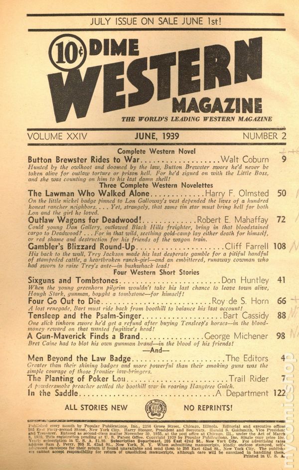 Dime Western Magazine (1932-1954 Popular Publications) Pulp comic books 1955 or before
