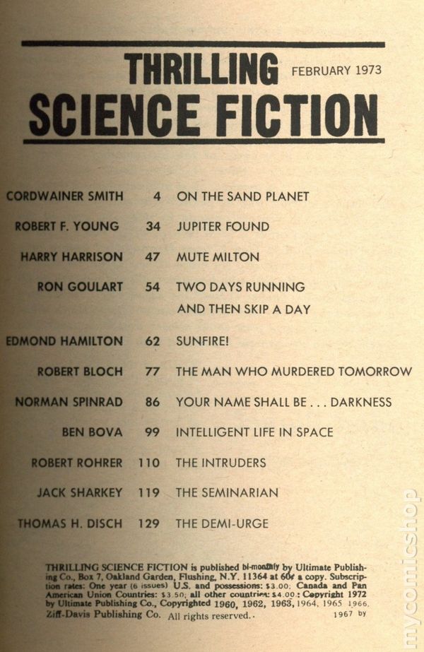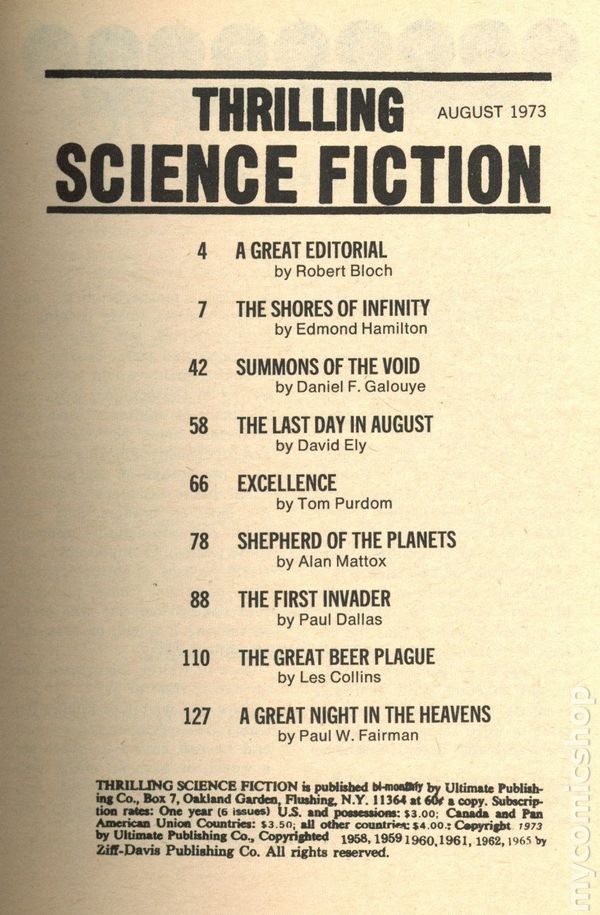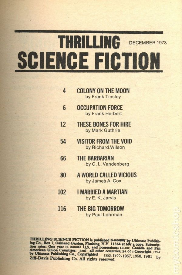 Thrilling Science Fiction (1966-1975 Ultimate Publishing) Pulp comic books 1973