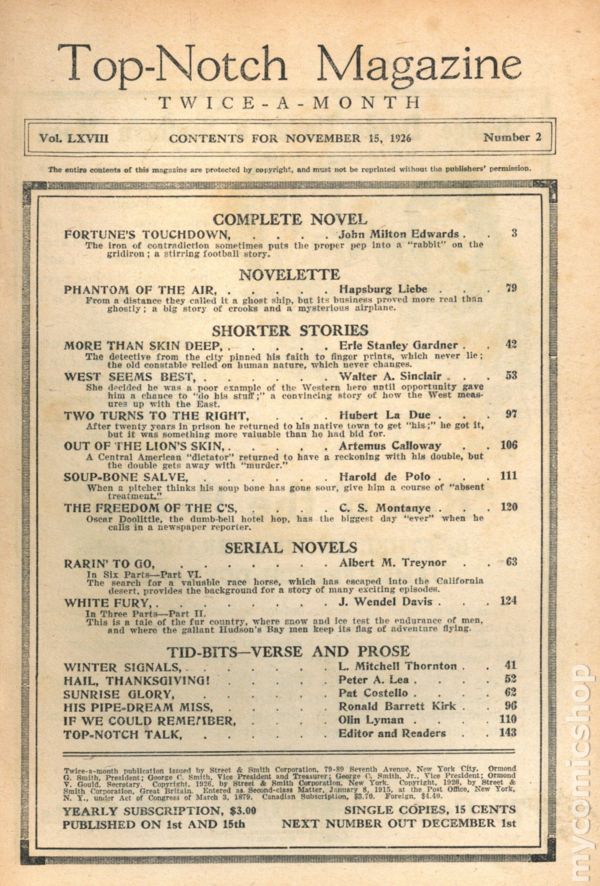 Top-Notch (1910-1937 Street & Smith) Pulp comic books 1926