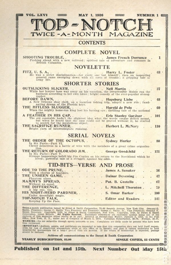 Top-Notch (1910-1937 Street & Smith) Pulp Vol. 66 #1Tags: Pulp AdventurePublished May 1926 by Street & Smith.$59.00