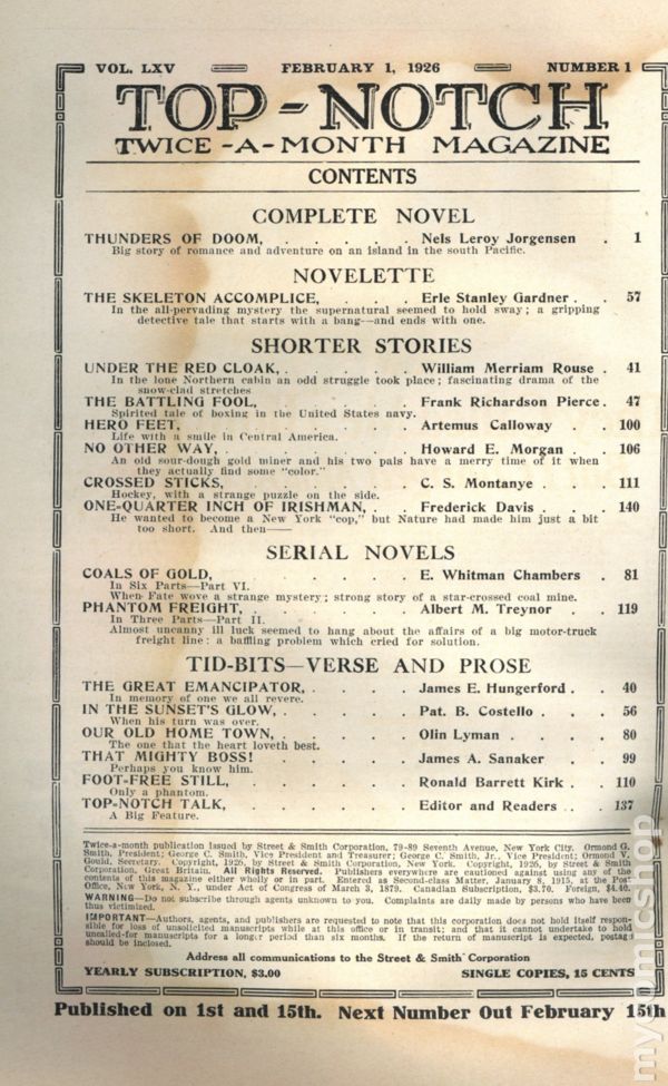 Top-Notch (1910-1937 Street & Smith) Pulp Vol. 65 #2Tags: Pulp AdventurePublished Feb 1926 by Street & Smith.