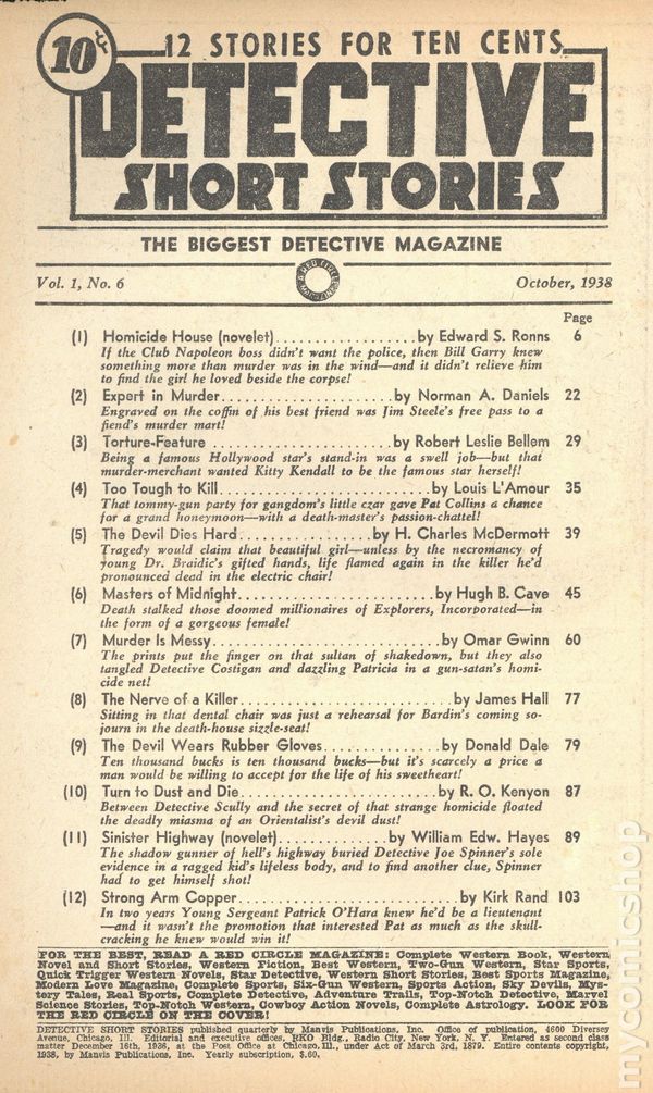 Detective Short Stories (1937-1947 Manvis Publications) Pulp comic books 1926 or later