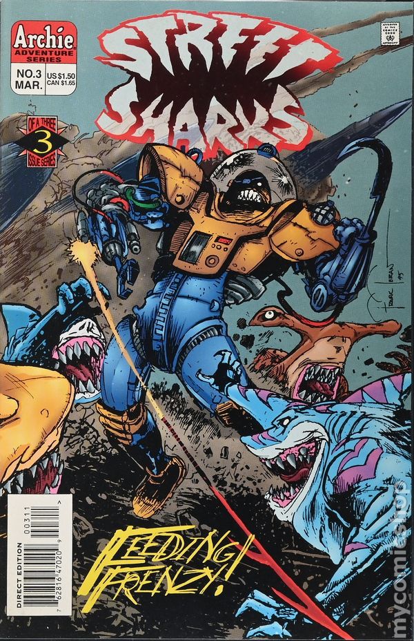 $20 Archie STREET SHARKS (1994) #3 Newsstand Variant Low Print Run FN/VF Ships FREE! $20 Street Sharks #3 (Archie Comics) $66 Street Sharks (Mini-Series) #3 (Newsstand) FN; Archie | w/Bag+Board Clicking on the links to the eBay listings shown above and then making a purchase may result in MyComicShop earning a commission from the eBay Partner Network.