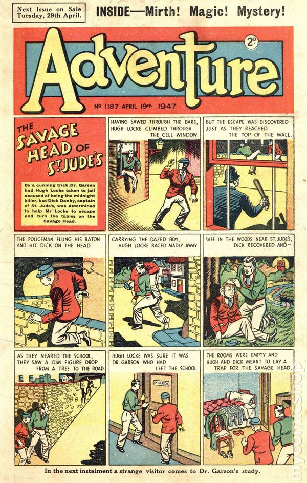 No. 1187 - April 19, 1947. Weekly British boy's adventures text stories with illustrations printed in tabloid format. Cover price '2D', 7.5 x 12, B&W, 12 pages-all newsprint.