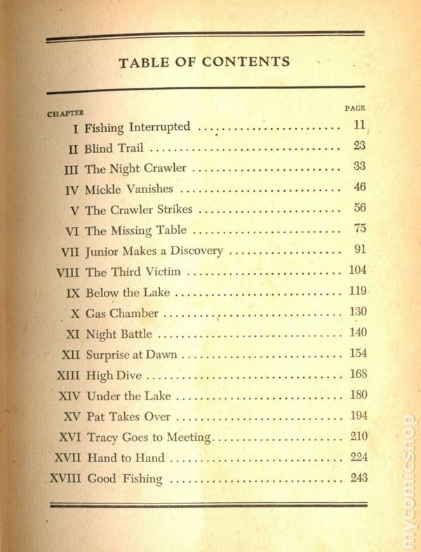 No Dust Jacket - 1st printing. By Chester Gould. A board member of a local mining enterprise has gone missing and Dick finds himself assisting the local sheriff, while on vacation with Junior and Tess. When the villainous fiend calling himself "The Night Crawler" kidnaps Junior and Tess, Dick Tracy redoubles his efforts, until he, too, it captured! With Tracy missing and the clock ticking, it falls to Pat Patton to solve the case on his own! Hardcover, 5 1/2-in. x 8-in., 254 pages, Text, with B&W illustrations.