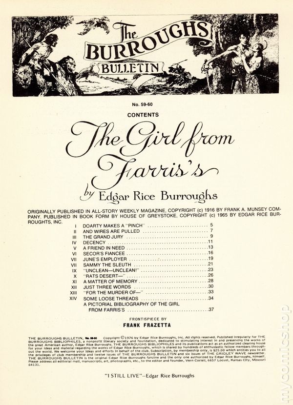 ERB Fanzine. Frazetta cover. Reprints the complete story, "The Girl from Farris's." 8.5" x 11", 44 pages, black and white.