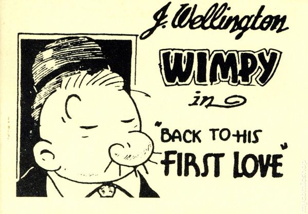 " J. Wellington Wimpy in Back to His First Love" - This item is an 8-Pager, commonly known as a Tijuana Bible; most were published ca. 1920s-1940s. The artists, writers, and publishers of these booklets are generally unknown. Most 8-Pagers are humorous takes on newspaper comic strip characters, movie stars, and political figures of the time, usually in sexually explicit situations, and invariably produced without permission or respect for copyright. These are timeless pieces of American comic sub-culture and are often considered the precursor to the underground comics created by the likes of Robert Crumb and Gilbert Shelton. Due to the circumstances in which these items were originally created, it is virtually impossible to determine edition and printing, although modern era reprints are usually easily identifiable. We will note these differences to the best of our ability. Not available for international sale. You must be 18 or older to order this item. Stapled pages, 4 1/2-in. x 2 1/2-in., 8 pages, single ink color.