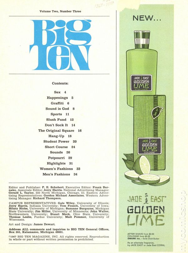 Vol. 1, No. 6. March 1967. Humor and style magazine for Big Ten universities students. 8.25" x 10.75". 24 pages. Black and white with some color.