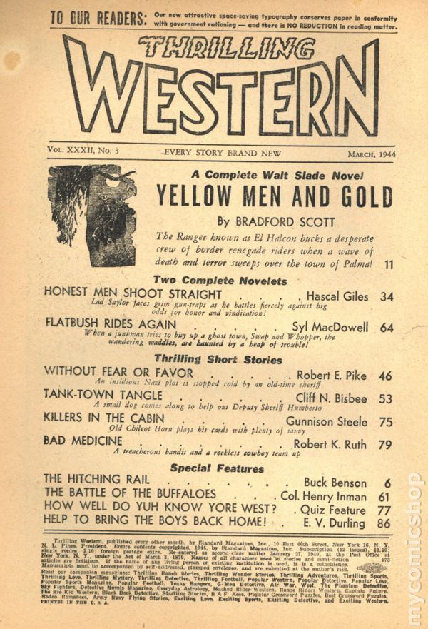Thrilling Western (1934-1953 Standard) Pulp comic books 1944