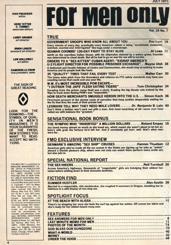 For Men Only (1954-1977 Newsstand/Canam) Magazine comic books 1970-1979