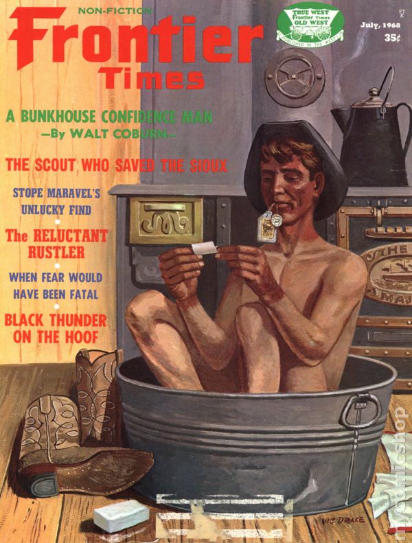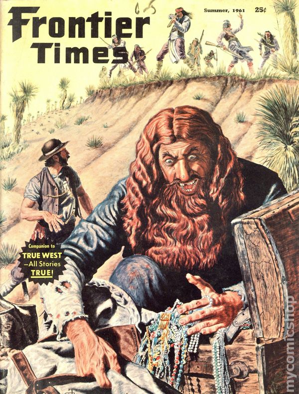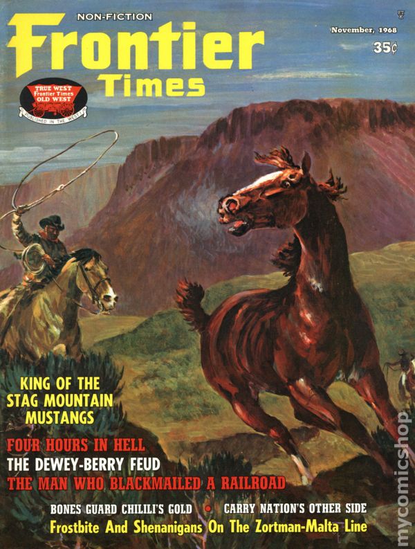 Magazine of true stories of the American Frontier. Cover by Gene Shortridge. Features illustrations and photos of the old west. B&W text. Color cover. 8 1/2-in. x 11-in. 74 pages. Cover price $0.35.