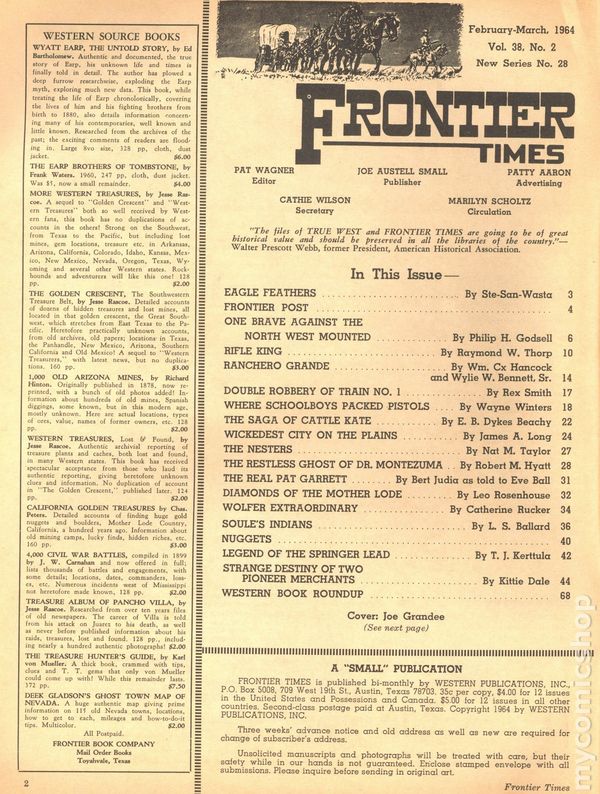 Vol. 38, No. 2 - March, 1964. Magazine of true stories of the American Frontier. Features illustrations and photos of the old west. 8.25" x 11", 72 pages, B&W. Cover price $0.35.