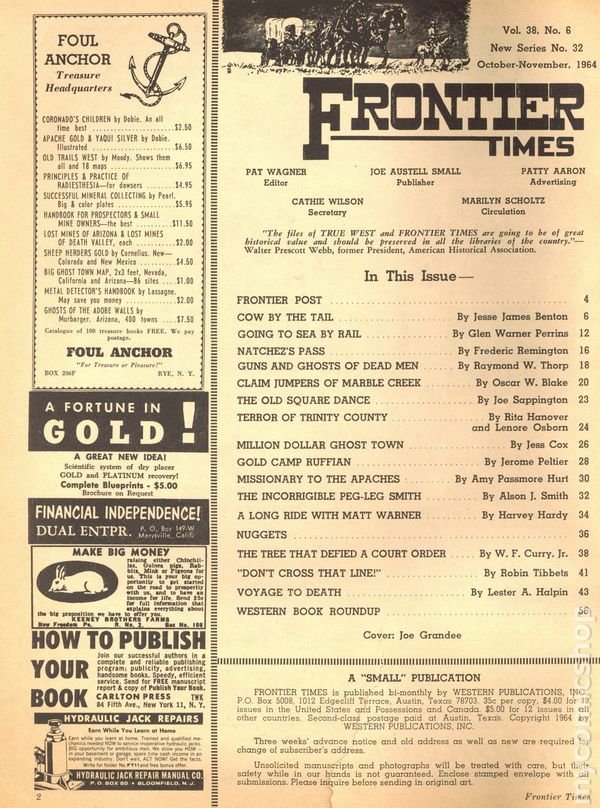 Vol. 38, No. 6 - November, 1964. Magazine of true stories of the American Frontier. Features illustrations and photos of the old west. 8.25" x 11", 72 pages, B&W. Cover price $0.35.