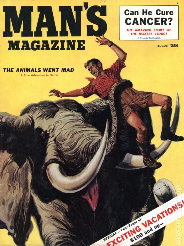 $49 Man's Magazine v. 1 #6, Aug. 1953 GD Elephant Attack Cover! Large Format! Clicking on the links to the eBay listings shown above and then making a purchase may result in MyComicShop earning a commission from the eBay Partner Network.