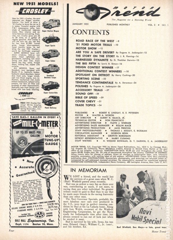 Motor Trend (1949 Peterson Publishing) Magazine comic books 1955 or before