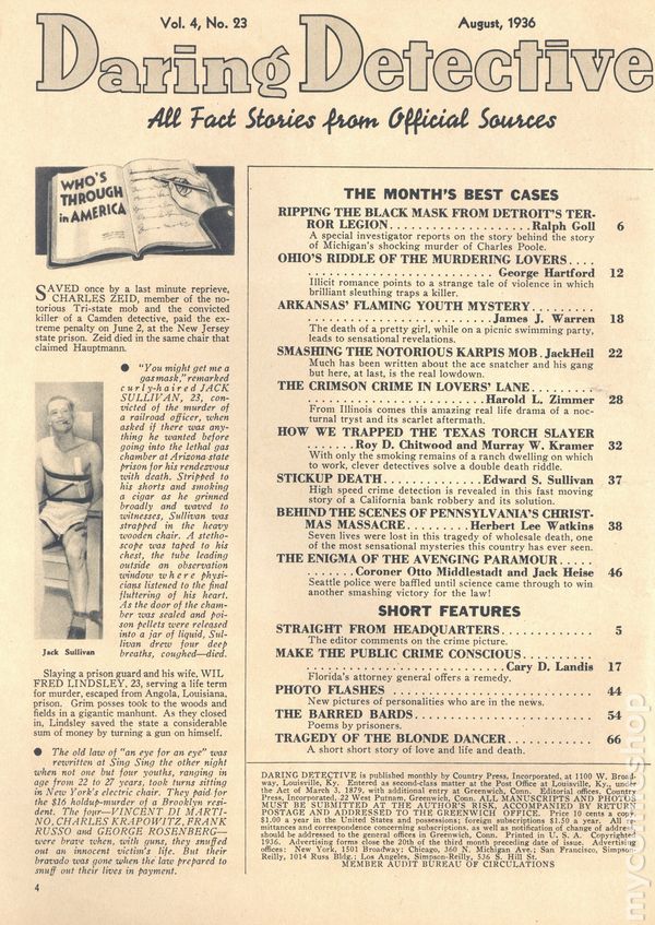 Subtitled "All Fact Stories from Official Sources. True crime magazine, illustrated with period photographs. 8 1/2-in. x 11 1/2-in., 66 pages, B&W. Cover price $0.10.