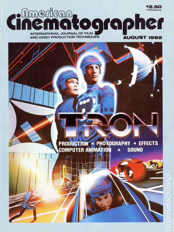 August 1982 issue. Film magazine dating back to 1920 dedicated to the art and craft of cinematography. Tron/Bruce Boxleitner and Jeff Bridges photo cover. The Making of Tron, Computer Assisted Filmmaking, Musync and other articles. 8 1/2-in. x 11-in., 100 pages, PC/BW. Cover price $2.00.