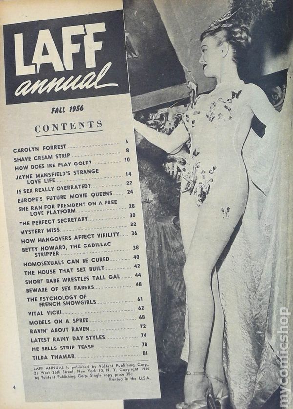 1941 Annual Issue. Zedra De la Condre Cover Model. Published once a year, this oversized issue presents the years best pictorials, and gags from Laff magazine! 10 1/2-in. x 13 1/2-in. 66 pages, B&W. Cover price $0.25.