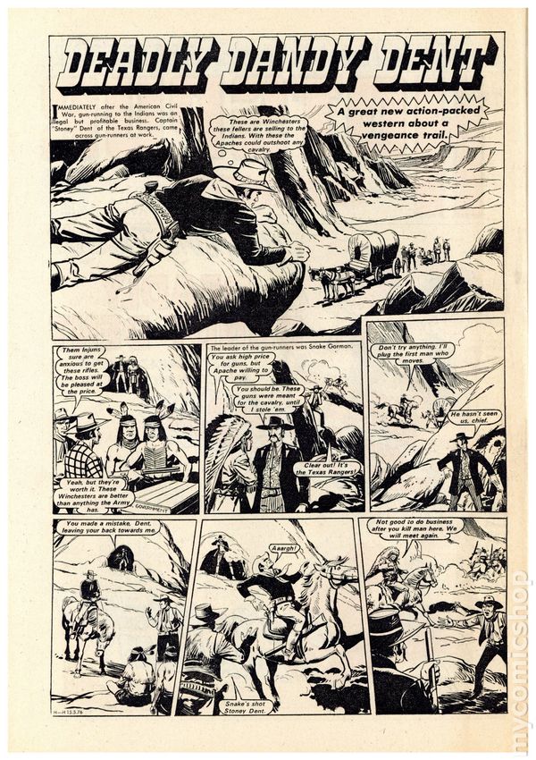 December 18th, 1976. Action, Adventures, Western, and Humor comic strips featuring the return of King Cobra, Grasshopper Green and The Last School! Softcover 8 1/2-in. x 12-in., 32 pages, PC/PB&W.