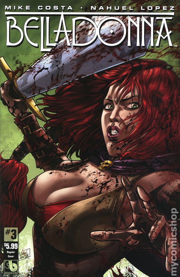 Wraparound Cover - (W) Mike Costa (A/C) Nahuel Lopez Belladonna rages through a world of swords and sensual sorcery to rule an age of iron! For years no one has been able to stand against her fury. The red-haired demon queen was ruthless and savage in dispatching male foes that stood in her way on the field of battle. But a serpent in the form of a sensual sorceress has found a way to break through the magical defenses that protect Belladonna and threatens to send the barbarian queen to her grave. Belladonna is a hardcore fantasy epic with sexy ladies and epic battles! 48 pages, full color. Mature Readers Cover price $5.99.