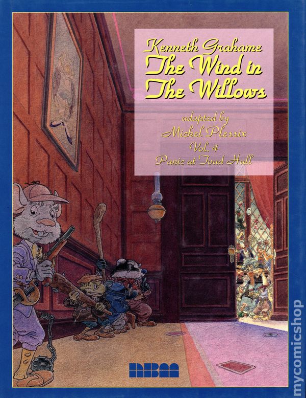 Volume 4 - 1st printing. "Panic at Toad Hall!" Story, art and cover by Michel Plessix, based on the book by Kenneth Grahame. Translated by Joe Johnson. NBM/Flying Buttress presents Plessixs version of Kenneth Grahame's beloved childrens tale. After escaping from prison, Toad comes home to find his manor invaded by stoats, weasels and ferrets, having a party; Toad seeks the help of Badger, Mole and Rat to take Toad Hall back in an epic battle. Hardcover 8 1/2-in. x 11-in., 32 pages, Full Color. Cover price $15.95.