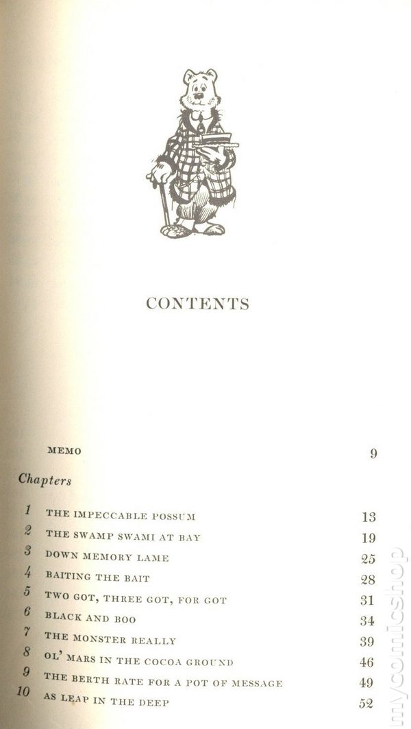 2nd and later printings. By Walt Kelly. Collecting the wacky adventures of Pogo Possum and the rest of the zany creatures that live down in denizens of Okefenokee Swamp! Softcover, 6 1/2-in. x 9-in., 192 pages, B&W. All Ages Cover price $1.25.