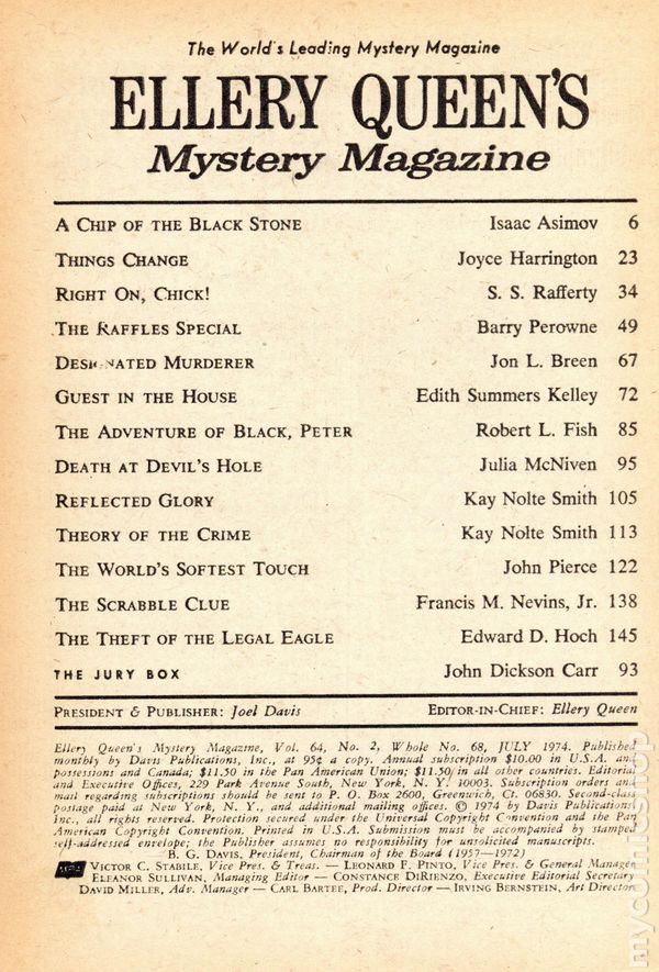 Ellery Queen's Mystery Magazine (1941-Present Davis-Dell) comic books 1974