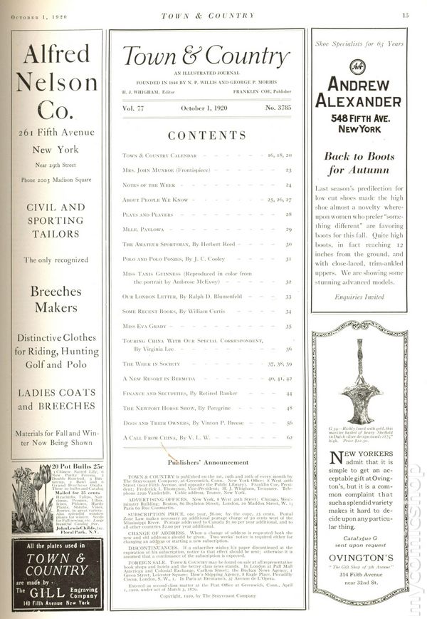 Town and Country (1901 Stuyvesant Company) Magazine Vol. 77 #3785Published Oct 1920 by Stuyvesant Company.