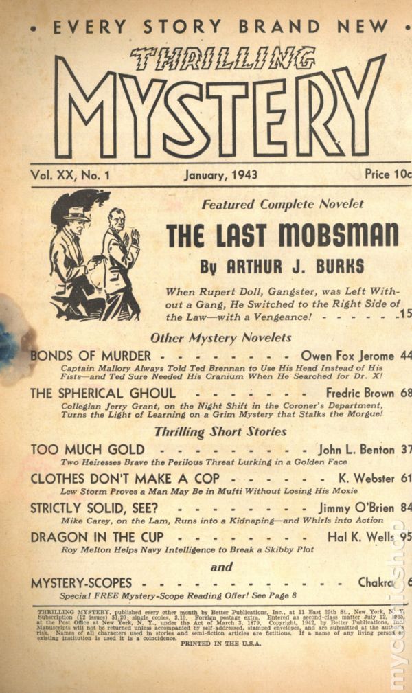 Thrilling Mystery (1935-1947 Standard) Pulp Vol. 20 #1Published Jan 1943 by Better Publications.