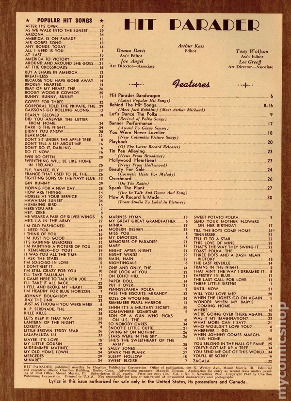 Hit Parader (1942 Charlton) Magazine Nov 1942Published Nov 1942 by Charlton Publishing.