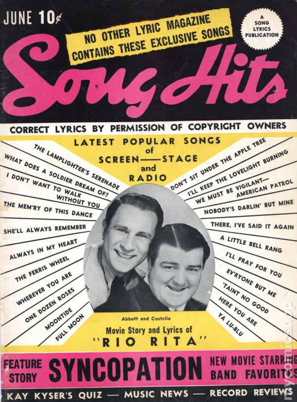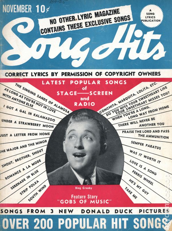 Long running magazine featuring short news articles on musicians and bands, and lyrics to popular songs. Cover price $0.10.